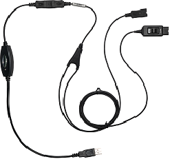 • Y cord with USB bottom cord and mute switch designed to be used in training and supervisory settings. Suitable for a wide range of VoIP communication systems.